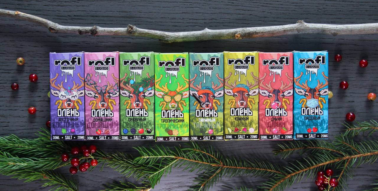 Жидкость Олень salt by rofl 30 мл 20 мг strong Вкусы: Восточный - Виноградный компот Северный - Ягодный морс с нотками хвои и льдом Таёжный - Жвачка с лесными ягодами Тропический - Ананас со льдом Южный - Арбузно-яблочный сорбет с малиной Дикий - Жвачка з
